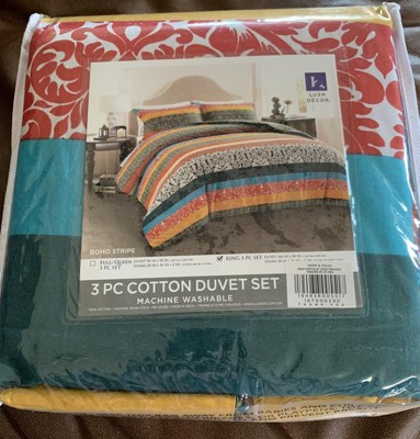 Lush Décor Boho Stripe Reversible Cotton Duvet Cover Set Turquoise/Tangerine
