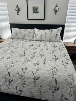Lush Décor 3pc Full/Queen Watercolor Wildflower Scallop Edge Floral Quilt Set Neutral: Non-Woven, OEKO-TEX Certified