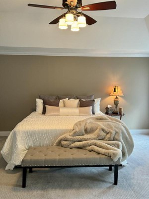 [This review was collected as part of a promotion.] Beautiful off white. Luxurious and super comfy. It really elevates the look of my bedroom. Excellent quality.