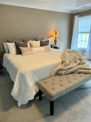 [This review was collected as part of a promotion.] Finding a comforter should be easy, right? In theory, yes, but in reality, there are a surprisingly vast number of choices. I had been searching for the right comforter and was lucky enough to receive Jacquard Wave 3 Piece Comforter Set. The comforter set came neatly packed inside its own “Lush Decor” tote with handle which you can store the comforter when not in use. It’s a lovely and stylish in a cream color chenille wave pattern which is versatile and will easily fit into any decor style. Out of the box it did not take very long for the comforter to fluff up and was ready to go on our bed. My husband is not a fan of overly feminine bedroom decor and this comforter set was one of the few he actually liked! I have purchased other items from Lush Decor and their products are very high quality and their customer service excellent! ⭐️⭐️⭐️⭐️⭐️
