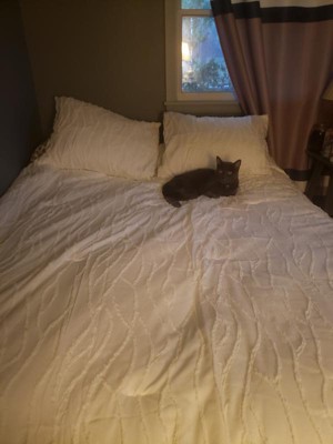Embellished with a tufted wave pattern, the Lush Decor Jacquard Wave Comforter Set easily adds dimension and texture to your bedroom. This comforter set is a great addition to a modern, boho, coastal, or cottage styled home. Decorate your primary or guest bedroom with this unique tufted white comforter set. The texture from the clip jacquard pattern brings a relaxed, classic style to your space. Layer with your favorite blankets or pillows for a complete look. This 3 piece bedding set includes 1 comforter and 2 standard pillow shams. This microfiber bedding set offers softness and breathability. The polyfill is so soft and light as air, perfect for hot sleepers or great as an extra layer for those cold sleepers who layer-up to keep warm. STANDARD 100 by OEKO-TEX® certified, all components have been tested and certified free from harmful substances. To care for this white bedding set, simply machine wash cold on the gentle cycle and tumble dry low. Use an iron on low heat to release wrinkles, if needed.