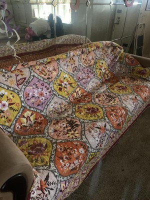 [This review was collected as part of a promotion.] I got this set a few weeks ago and absolutely love it. It looks great on my bed and matches the color scheme I have in my room which is a mellow vibe. The design is beautiful and the colors are vibrant love the details that went into it. I’ve had mine a few weeks now and it’s definitely made very well and it’s been washed a couple times now and it’s just as colorful and comfortable and before it’s first wash. All the colors blend so very well together the orange the yellow the grey the flowers are so beautiful as well and the set got my bed perfectly so the size is true. Definitely adds colors to the room and with the sun that comes in my window everyday I just think it’s perfect.