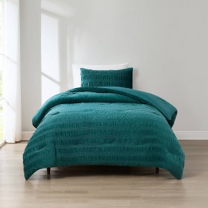 Elevate your space with the lavish textures of this rich velvet comforter set. The ultra soft velvet features a textured ripple effect. This chic design is the perfect modern glam centerpiece for any stylish bedroom. The medium weight polyfill keeps you cozy all year long. This 3 piece bedding set includes 1 comforter and 2 shams. STANDARD 100 by OEKO-TEX® certified, all components have been tested and certified free from harmful substances. Machine washable for easy care.