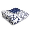 The Lush Decor Monique Reversible Cotton Throw Blanket is inspired by Mediterranean tilework, bringing a crisp, artisan feel to your home decor. The front patchwork pattern blends geometric and floral motifs, creating a bold yet versatile look. This quilted throw blanket for couch has a reversible design, giving you 2 looks in 1. The reverse features a subtle dotted stripe pattern. It complements coastal Mediterranean and boho decor styles. This patchwork quilt blanket is crafted from 100% cotton fabric with a cotton blend filling, and measures 50 inches wide by 60 inches long. It's the perfect size for single use or for two adults to snuggle in together. This blue throw blanket is a must-have for all your cozy moments. It makes an excellent layering piece for your bed, couch, or chair. Even great as a gift or the perfect pet blanket! STANDARD 100 by OEKO-TEX¨ certified, all components have been tested and certified free from harmful substances. To care for this throw blanket for bed, simply machine wash cold on the gentle cycle and tumble dry low. Use an iron on low heat to release wrinkles if needed.
