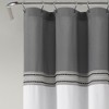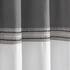Enhance your bathroom decor with classic neutrals of the Lush Decor Terra Embroidery Shower Curtain. Designed with modern color blocking and 3 rows of tiny embroidered squares, this easily adds dimension to your space. Decorate your primary or guest bathroom with this elegant shower curtain. It's easy to style in modern glam, transitional, or traditional decor styles. This color block shower curtain measures 72 inches wide by 72 inches long and is crafted from a soft microfiber fabric. Installation is easy with 12 button holes at the top to hang with shower hooks or rings. Pair this fabric shower curtain with a liner, sold separately. To care for this bathroom curtain, simply machine wash cold on the gentle cycle and tumble dry low. Use a steamer to remove wrinkles, if needed.