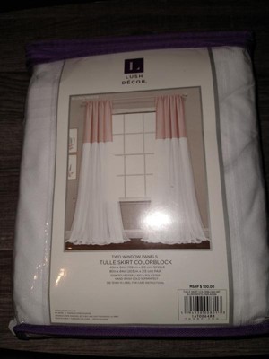 Decorate your kids bedroom, playroom, or nursery with the adorable Lush Decor Tulle Skirt Colorblock Light Filtering Window Curtains. A classic color block design and a frilly layer of tulle cascades down half of the panel. These light filtering curtains for bedroom provide moderate privacy while helping to filter sunlight, allowing a soft glow to fill the space. These panels offer feminine frilly style that can be used in many interior design themes, especially coquette, glam, or modern decor styles. Color blocking is always in style. These nursery curtains are crafted from a 100% polyester fabric and are unlined. It features two layers with a white tulle fabric on the bottom half. Sold as 2 panels, each measuring 40 inches wide by 84 inches long. These drapes offer seamless installation with a 3" rod pocket, allowing you to easily slide it onto your curtain rod or using clip rings (not included). To care for these nursery curtains, we recommend to hand wash cold and hang to dry. Do not tumble dry. Use a steamer to release wrinkles, if needed.
