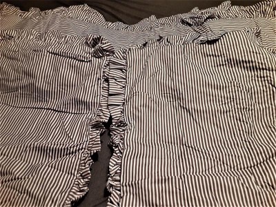 [This review was collected as part of a promotion.] I recently used the REYNA STRIPE RUFFLE-CS-GRAY/WHITE-3PC-FQ bedding set and I couldn't be happier with the set. The set comes with a beautiful gray and white striped comforter, two matching pillow shams, and an added touch of elegance with ruffled edges. The fabric of the bedding set is high-quality and soft to the touch, making it incredibly comfortable to sleep in. The comforter is the perfect thickness - not too heavy, not too light - and provides just the right amount of warmth for a comfortable night's sleep. The pillow shams are also soft and well-made, with the same beautiful striped pattern and ruffled edges as the comforter. One thing I particularly love about this bedding set is how versatile it is. The gray and white stripes are neutral enough to match with any color scheme, and the ruffled edges add just the right amount of feminine charm to the overall look. Whether you're looking to create a cozy, cottage-inspired bedroom or a sleek and modern space, this bedding set is the perfect starting point. Overall, I would highly recommend the REYNA STRIPE RUFFLE-CS-GRAY/WHITE-3PC-FQ bedding set to anyone looking to upgrade their bedroom decor. It's stylish, comfortable, and versatile - everything you could want in a bedding set!