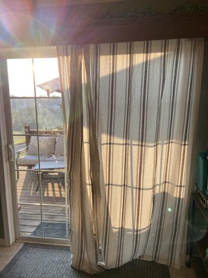 [This review was collected as part of a promotion.] I was hoping these beauties would cover my back sliding glass door and they do! They are stunning and give my dining/living area a sense of comfort and relaxation! I am so happy how they turned out. They aren’t blackout curtains by any means but they do blockout a bit of light. The material is beautiful and have that rustic feel and look! I can’t be any happier with these!