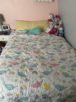 [This review was collected as part of a promotion.] This quilt is so adorable! My niece is in love with Narwhal’s and it so hard to find anything for her. She was so excited the colors matched her room perfectly and the quilt can be used for all seasons.