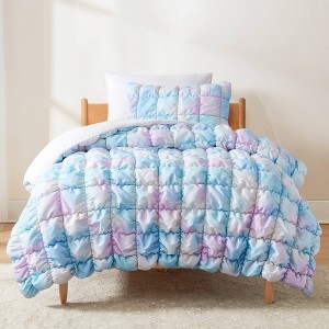 The luxurious comfort of this Puff Quilted Comforter Set will have you wanting to stay in bed all day! Great for any bedroom or dorm room, this cozy set features a super soft, cloud-like texture with a box quilting pattern. This 3 piece bedding set includes 1 comforter and 2 shams, while the 2 piece set includes 1 comforter and 1 sham. Crafted from a soft crinkle microfiber and lightweight polyfill this set is STANDARD 100 by OEKO-TEX® certified, all components have been tested and certified free from harmful substances. Dry clean only.