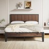 Lusimo Full Metal Platform Bed Frame with Fabric Upholstered Headboard Easy Assembly Brown