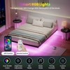 - SMART AMBIENT LIGHTING: Three concealed LED light strips encircle the metal bed frame, offering customizable lighting with over 60,000 RGB colors. Controlled via remote or app, these lights enhance the atmosphere and offer various modes including music synchronization, microphone responsiveness, and timing.