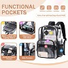 The Luupatchy Clear Backpack is crafted from TPU material, which is more durable, soft, flexible, odorless, crease-resistant, cold-resistant, wrinkle-free, water-resistant, and abrasion-resistant compared to PVC clear backpacks in the market. With dimensions of 16.14 x 11.41 x 7.08 inches (H x L x W), it offers a large capacity with multifunctional compartments: 1 large main compartment for laptops, 2 front zippered compartments, zippered mesh pockets, and 2 side mesh pockets for a water bottle. Featuring visibility and multiple pockets for well-organized stuff, it's ideal for school, beach trips, sporting events, stadiums, etc. Reinforced shoulder strap stitching provides extra strength to reliably support heavier items, while sturdy handles and soft, breathable padded shoulder straps ensure comfortable carrying and reduce shoulder pressure. Weighing only 1.5 lbs, with wider, thicker, adjustable shoulder straps and a humanized design, it's lightweight and comfortable to carry, suitable for daily use and adding a vibrant touch with its colors and rainbow strap.