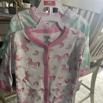 Luvable Friends Baby Girl Cotton Snap Sleep and Play 2pk, Unicorns, 0-3 Months