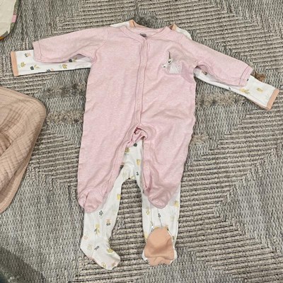 Luvable Friends Baby Girl Cotton Snap Sleep and Play 3pk, Unicorn - 1 of 4