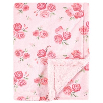 Luvable Friends Baby Girl Plush Blanket with Faux Shearling Back, Pink Floral, One Size