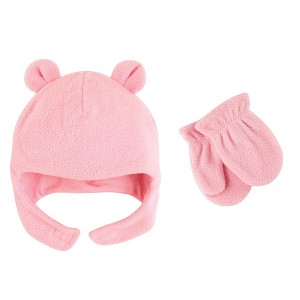 Luvable Friends fleece bear ears hat and mitten set is made of 100% cozy warm polyester fleece and features ear flaps to keep your little one's ears safe and warm on cold winter outings. Combining function with form, these caps feature ears on top to look like teddy bears, brightening up the winter blues of anyone your baby meets. These toasty warm mittens have elastic around the wrist to make sure they stay on and keep your little one's fingers cozy. Machine washable. Luvable Friends Baby and Toddler Girl Beary Cozy Hat and Mitten Set 2pc, Light Pink is a great baby essentials set for your little one.