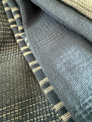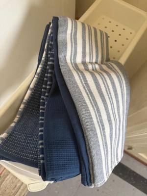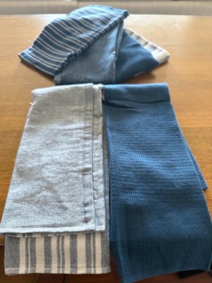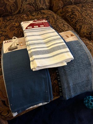 [This review was collected as part of a promotion.] Soft towels with a nice texture for cleaning up messes. Nice mix of colors in the navy pack. Standard kitchen towel size. Not super decorative, a staple for daily use.