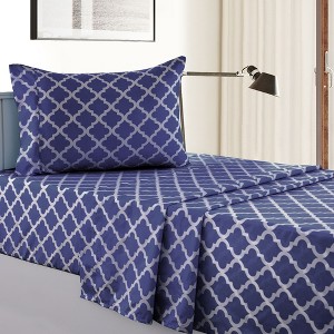 4 Piece Geometric Patterns Deep Pocket Sheet Set Printed Bed Sheets with Pillowcase Premium Soft Microfiber Sheets - 1 of 4