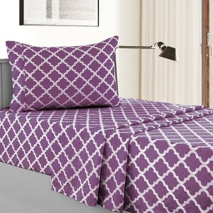 4 Piece Geometric Patterns Deep Pocket Sheet Set Printed Bed Sheets with Pillowcase Premium Soft Microfiber Sheets - 1 of 4