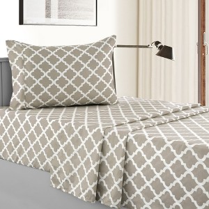 4 Piece Geometric Patterns Deep Pocket Sheet Set Printed Bed Sheets with Pillowcase Premium Soft Microfiber Sheets - 1 of 4