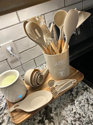 Lux Decor Cooking Utensil Set 35 Piece Silicone and Wood Kitchen Utensil Set with Holder Non Stick Kitchen Gadgets & Tools