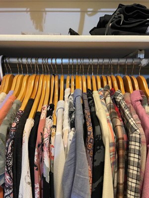 [This review was collected as part of a promotion.] I LOVE how aesthetically pleasing my closet looks now!!! I can believe I’ve never bought wooden hangers before they look amazing! And the quality is outstanding. I love that you can swivel the hook because I’m very particular on what way my clothes are facing so it makes it easier! Also the non-slip notches are great I have some shirts that kept falling off with the plastic ones and so far they are staying put. I’m going to go ahead and order more to have only wooden hangers because I love the look.