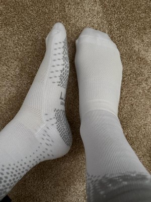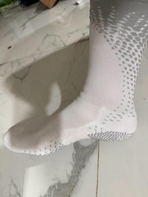 [This review was collected as part of a promotion.] These long white grip socks are great quality and super comfortable once broken in. The grip works really well, pretty good support and no slipping around, even during workouts and they look clean and stylish. The only reason I’m giving four stars instead of five is that they’re a bit too stiff at first. After a couple of wears, though, they soften up and feel much better. Overall, a solid pair of breathable socks!