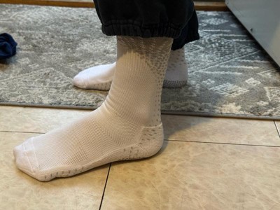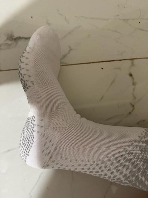 [This review was collected as part of a promotion.] These socks have excellent grip and provide great ankle support. They feel a bit rough on the bottoms of your feet at first, but after wearing them for a while and moving around, your feet adjust to the texture. They fit snugly to help prevent rolled ankles, and the breathable design lets air flow through as you move. I’d definitely recommend them if you’re looking for high-grip socks