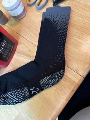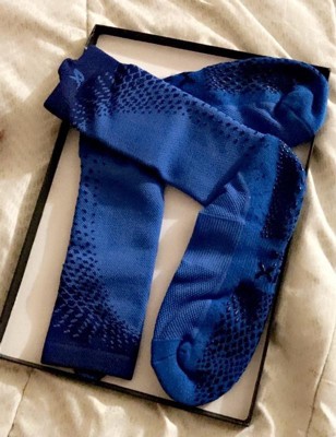 [This review was collected as part of a promotion.] Excuse the photo being a tad bit crusty, but I needed to sweep, and I didn’t realize it until after. Onto the product, these socks are amazingly comfortable, and the compression is great. I love that they have a grippy underside. It makes them really easy to walk in. I didn’t get a picture of the packaging, but it was top-notch. The socks came in a box and were wrapped like a gift. It was trulyamazing presentation. You definitely get a feeling of luxury when you open the box and put these on. I know these socks are meant for soccer or other sports, but I really love wearing these around the house.