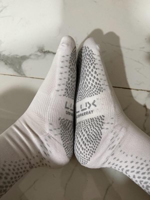 [This review was collected as part of a promotion.] The LUX Performance Grip Calf Socks are amazing! I wore them to play tennis, and they kept my feet cozy and comfortable throughout the game. Despite some sweating, the socks maintained their grip perfectly, providing excellent support and stability. If you're looking for high-performance socks that deliver on both comfort and functionality, these are a fantastic choice for any active day.