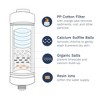 - 4-in-1 FILTRATION SYSTEM - PP Cotton Filter with orange peel to remove sediments, rust, and other particulates. Calcium Sulfite balls to remove chlorine. Organic salts to prevent limescale build-up. Resin Ions to soften water.