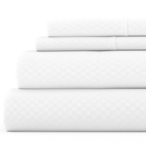 Product Name: Luxe Embossed 4 Piece Sheet Set - Ultra Soft - Becky Cameron, Checkered White, Full