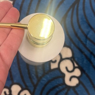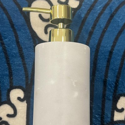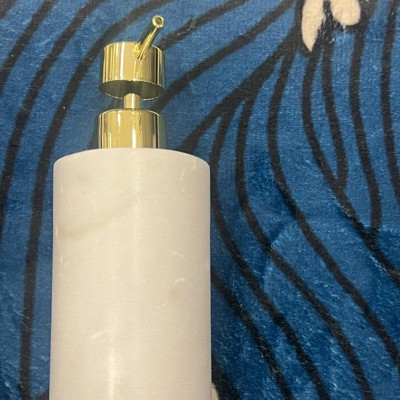 [This review was collected as part of a promotion.] I really love this awesome marble soap dispenser. It is well-made and matches my decor. I love that. You can get this in black white or burgundy. I love the gold accent on top which give it a nice modern look. This will go with any color decor, which is perfect for rearranging your new bathroom . the threshold brand does not disappoint with his great style quality and price point. I received an incentive to write this review.