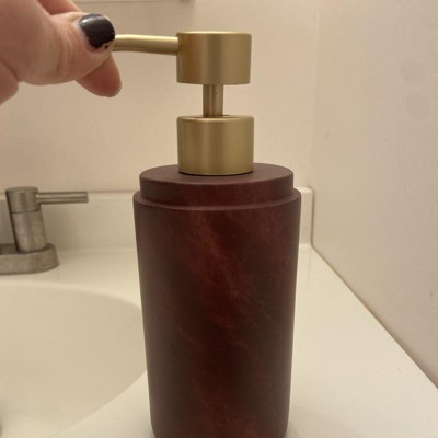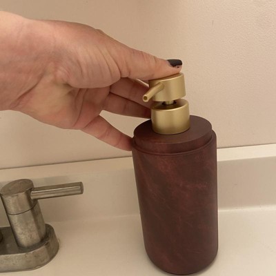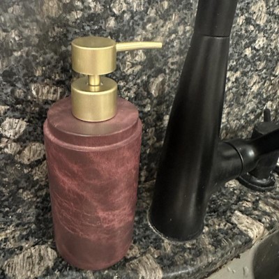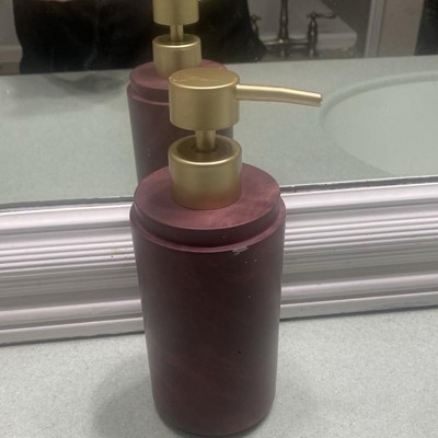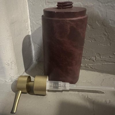Create a luxurious bath space with the addition of this Luxe Faux Marble Soap Pump from Threshold™. This wine-hued soap bottle is designed with a contrasting gold-tone pump for an eye-catching look you'll love. Made of faux marble, it's designed for use with lotion and liquid soaps.