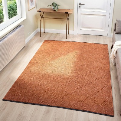 Luxe Weavers Geometric Non-Slip Orange 9x12 Washable Indoor Area Rug