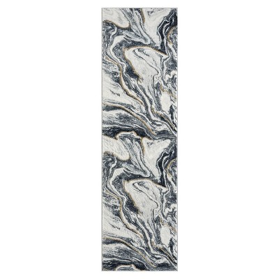 Luxe Weavers Marble Effect Abstract Blue 2x7 Indoor Area Rug