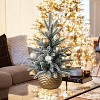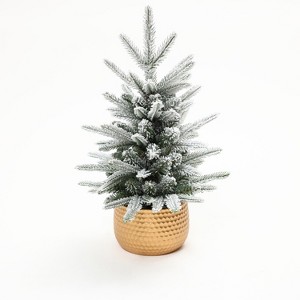 Don't miss out on this charming flocked artificial tree - the perfect addition to your Christmas decorations! It's made of a mix of PE and PVC, with lovely upswept branches and a gold base that adds a touch of elegance. At 1.5 feet tall, it's just right for tables, fireplaces, and other cozy spots. The best part? It's super easy to set up - simply take it out of the box, adjust the branches as desired, and you're all set!.