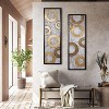 Transform your plain walls into a work of art with this exquisite wall decor set! The distressed gray background with gold and brown circles creates a stunning visual impact while the gold dust effect adds a touch of sparkle to your living room or bedroom. The MDF frame with gold metal abstract design perfectly complements the overall design, making it an excellent addition to your home decor. With four D-shaped buckles on the back, it's easy to hang and add texture and depth to any blank wall. Don't miss the opportunity to elevate your home décor with this beautiful wall decor set!