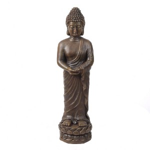 LuxenHome 27.6" Brown MgO Meditative Standing Buddha Garden Statue