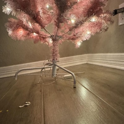 LuxenHome 7ft Pre-Lit Pink Slim Christmas Tree with Metal Stand & 8 Light Modes