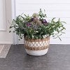 LuxenHome Boho MgO Planter – White Round Pot with Brown Accents & Drainage Hole