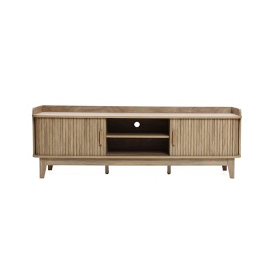 Spacious Size: Measuring 68.9"W x 15.7"D x 21.6"H, this wooden TV cabinet fits TVs up to 75 inches. Includes 2 side cabinets, 1 drawer, and an open shelf with cable management for tidy storage.