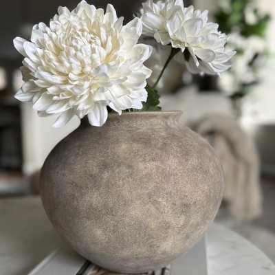 Bring rustic elegance to your home with this antique earthy gray and brown terracotta vase. Its rounded silhouette and subtly weathered glaze create a timeless, handcrafted look that blends seamlessly with both modern and traditional décor. Measuring 10.43" in diameter and 7.87" in height with a 5.12" inner mouth opening, it is perfect for displaying dried flowers, branches, or as a standalone decorative accent. Each vase is individually handmade, resulting in unique glaze variations and textures. The sturdy terracotta construction ensures durability, while its smooth surface makes cleaning easy.
