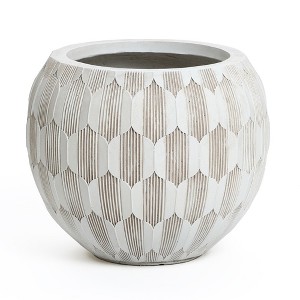 LuxenHome 14" Dia Round Concrete Planter Indoor Outdoor Large Plant Pot with Drainage Hole and Plug Modern Geometric Pattern Flower Pot White