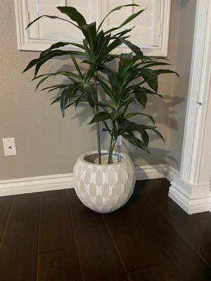 [This review was collected as part of a promotion.] Great quality planter, much bigger than I imagine it would be and looks perfect with my home decor. I’ve had this plant in my house for a few years now and I had purchased a planter that I thought it would look nice but it just didn’t workout, for years I looked for a good replacement and I could not find one that had the size and I look I was going for that was until I got this Luxen Home planter that fits perfect and looks amazing on the spot I had my precious sad and awful planter. I’m glad I tried this brand and size as it fits perfect and looks great with the rest of my home decor, the dimensions given online are accurate and the detail on it is truly very unique and pretty. Definitely happy with this planter, I think I’m gonna buy a matching one for my other plants.