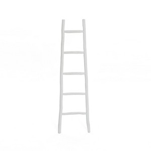 LuxenHome White Solid Wood 5-Rung Blanket Ladder