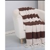 Vintage knitted throw blanket provides a great touch feeling. Made of soft knitted fabric that features stripe knitted pattern and hanging tassel rope style at border. It keeps you warm and cozy while providing softness to the touch. Throw blanket size is 50 inch by 60 inch. Perfect for lounging on the couch. Suitable for all season. This throw blanket is also great for a holiday gift. Care instructions: Machine wash cold with like colors. Tumble dry low. Do not bleach. Do not Iron.