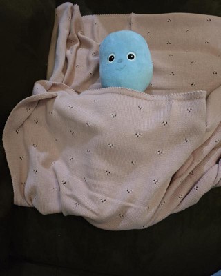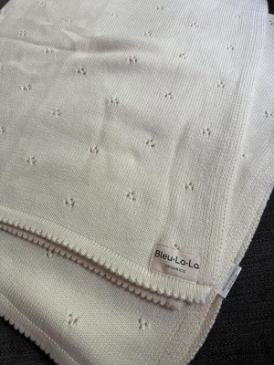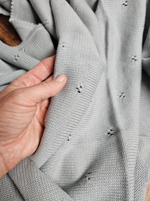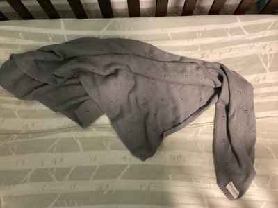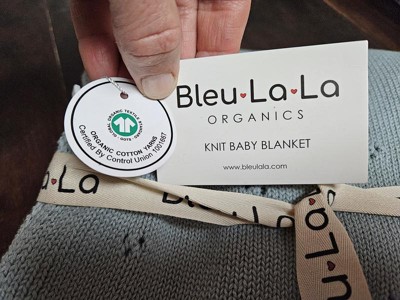 I love this baby blanket! So many wonderful features! 100% organic cotton. Super soft and buttery smooth knit like on both sides in the sweetest blue gray color. The tiny triple hole dot pattern makes the blanket so cute and unique. It's the perfect size and could be used as a baby blanket, toddler blanket, child, blanket or throw for anyone. The material is definitely high quality as you can tell by the feel and knit. It isn't going too fall apart quickly and washes great. My little guy loves this cozy blankie. And me too! I will be sure to put these on the baby shower gift list.