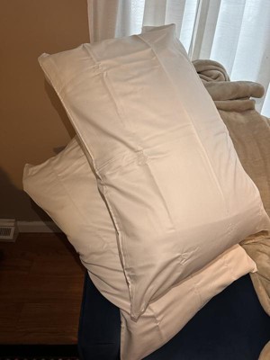 Loving these pillow cases. They fit standard pillows perfect without too much overhang. They are a true bright white so they will pair well with everything. They are soft and comfortable to sleep with. They hold up very well in the wash!